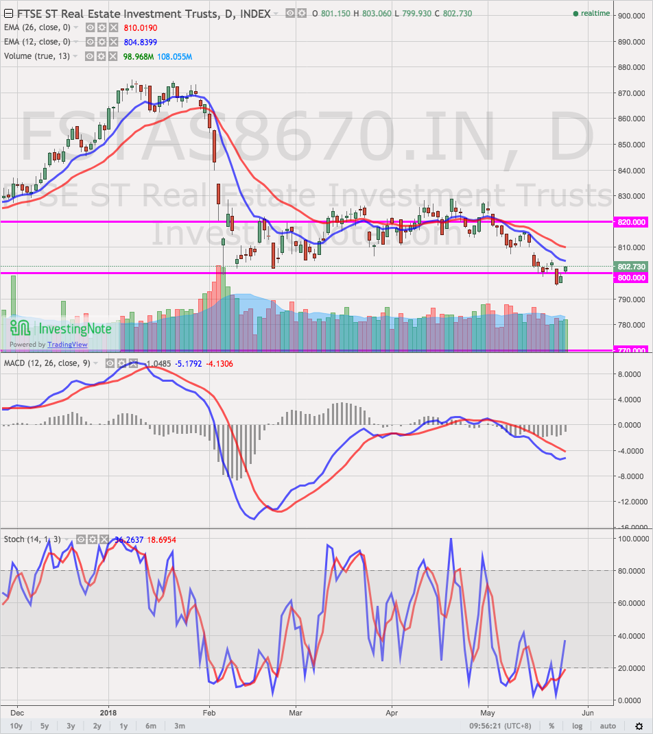 Singapore REITs index struggling to stay above 800 (Week closing 25 May 2018)
